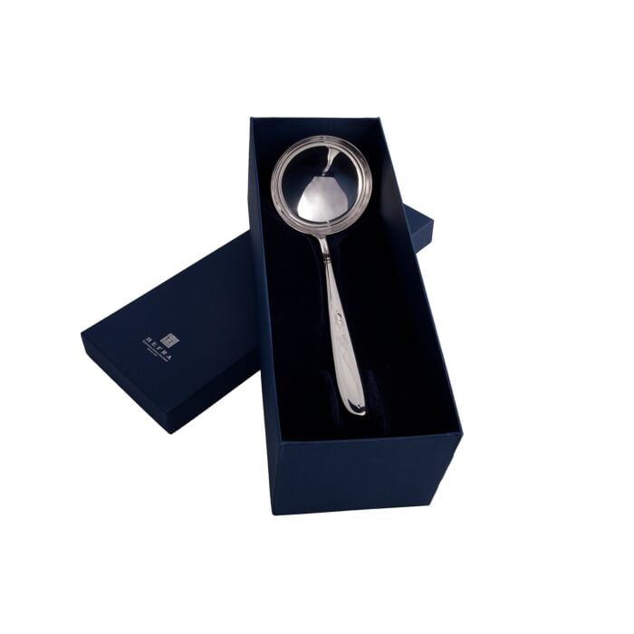 Prezentowana łyżka wazowa to kwintesencja stylu angielskiego. Posrebrzana, ozdobiona delikatnymi wzorami, tchnie tradycją, ale jednocześnie wpisuje się w nowoczesne trendy. Długość 38 cm, średnica czerpaka 9 cm sprawiają, że jest niezwykle praktyczna. Idealnie sprawdzi się zarówno na codzienne obiady, jak i podczas uroczystych przyjęć.